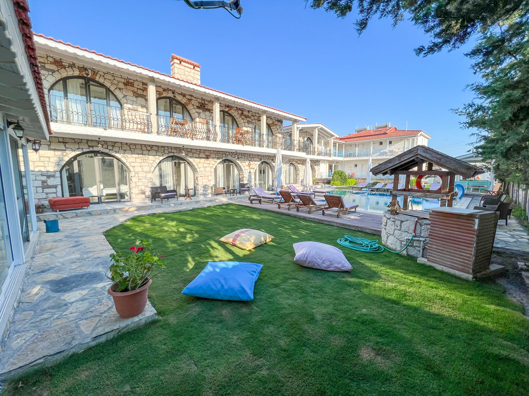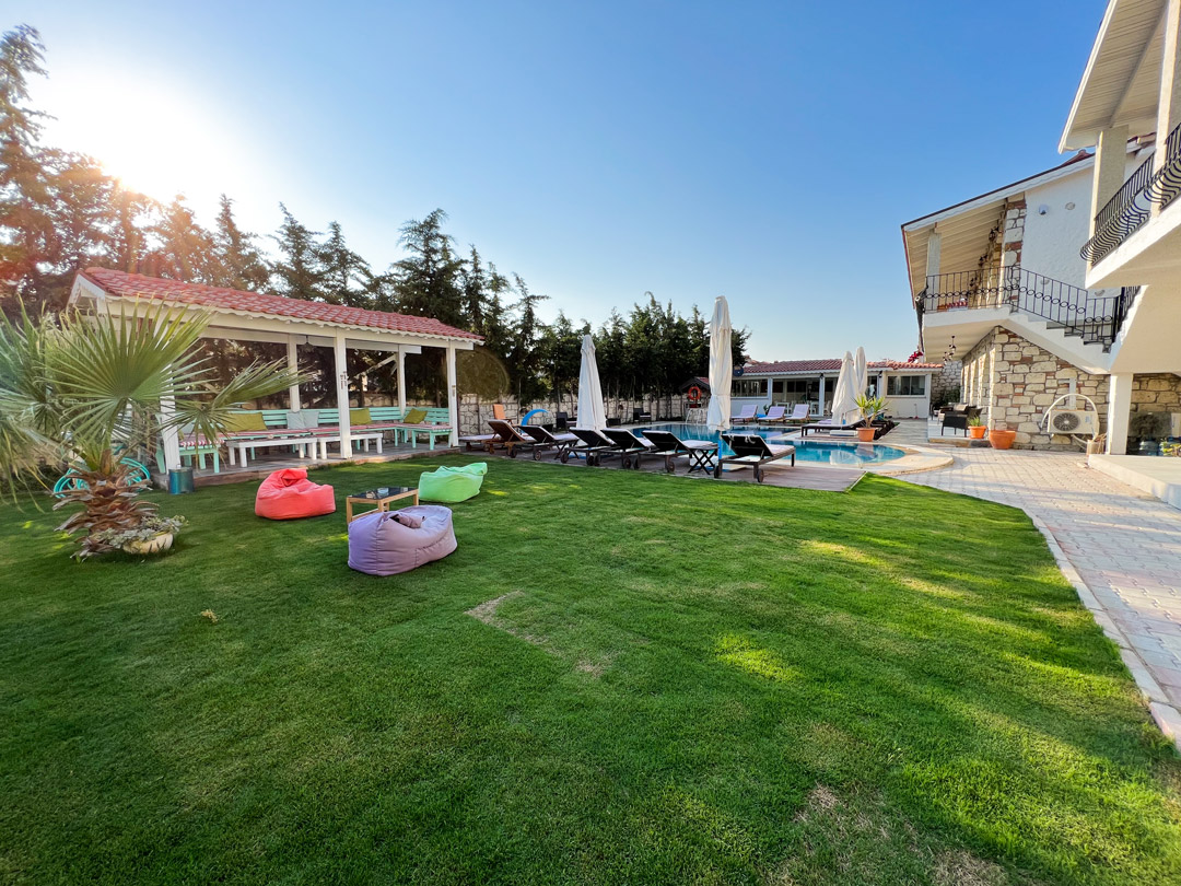 600 metrekare büyüklüğündeki geniş bahçemizde havuz başında yapacağınız nefis organik kahvaltının ardından dilerseniz 12 metre uzunluğundaki jakuzili havuzumuzda serinleyin, dilerseniz yemyeşil çimler üzerindeki şezlonglarda güneşin keyfini çıkarın.Sizlerin sağlığı ve konforu için havuz bakımında tuzlu jeneratör kullanılmaktadır.