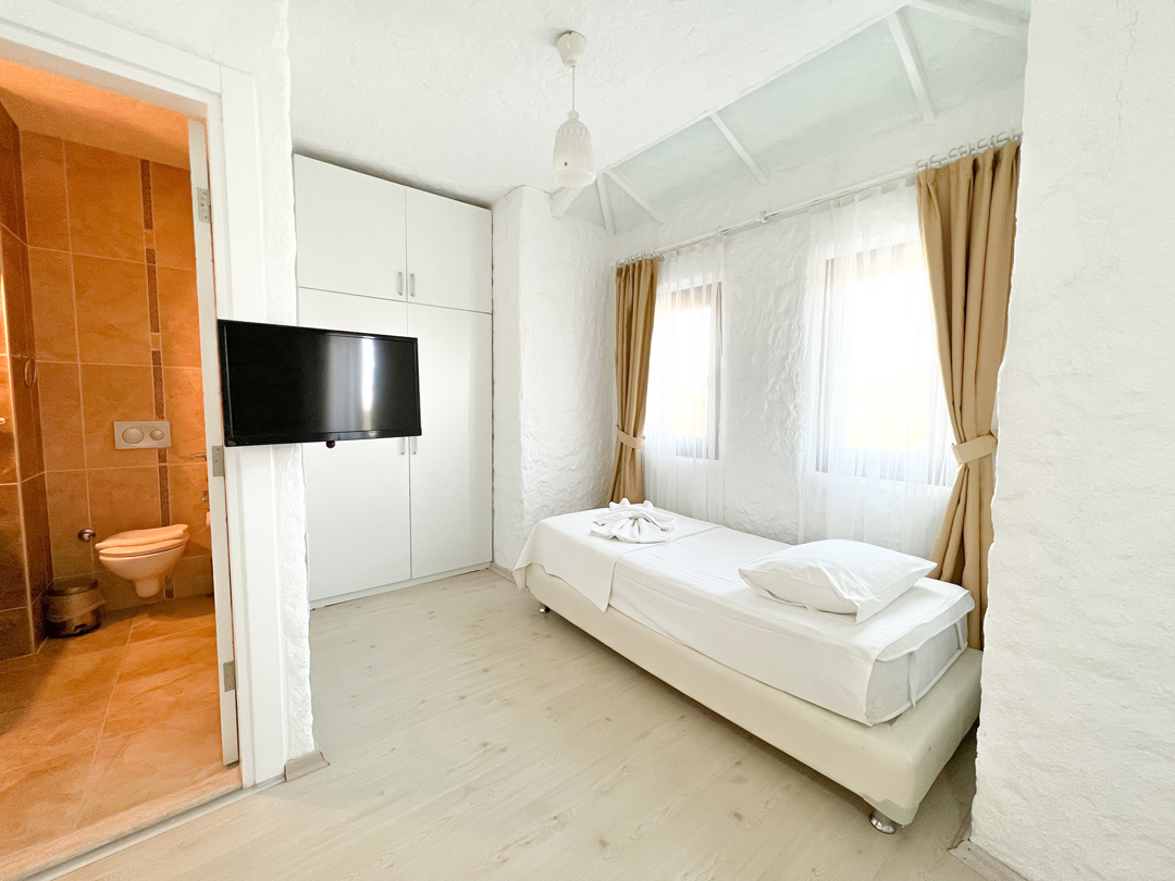 Bu odadan 2 tane mevcuttur. Rüzgar gülü manzaralıdır. Bir çift kişilik yatak ve bir tek kişilik yatak olmak üzere 3 kişilik oda tipidir. Bir duş-wc , minibar , 1 düz ekran TV, 1 tane dolap mevcuttur 22 (m²) dir