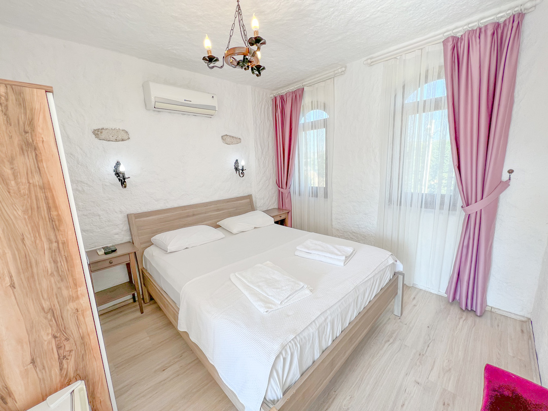 Bu odadan 12 tane mevcuttur. Bu oda 2 kişiliktir . Bir tane çift kişilik yatak mevcuttur. Bu odada 1 klima , 1 düz ekran TV, minibar duş-wc. Havuz ve bahçe manzaralıdır. 18(m²) dir.
